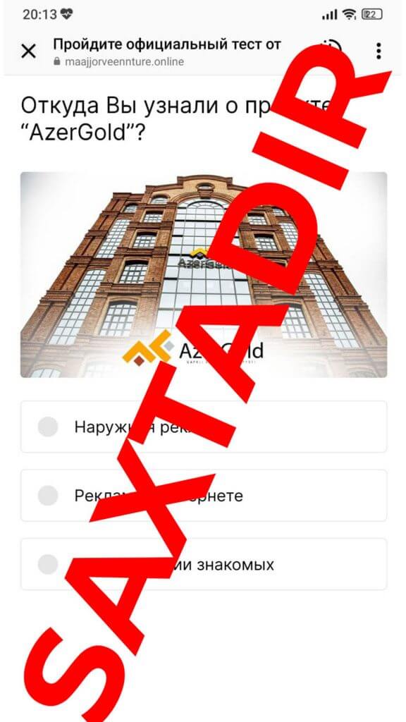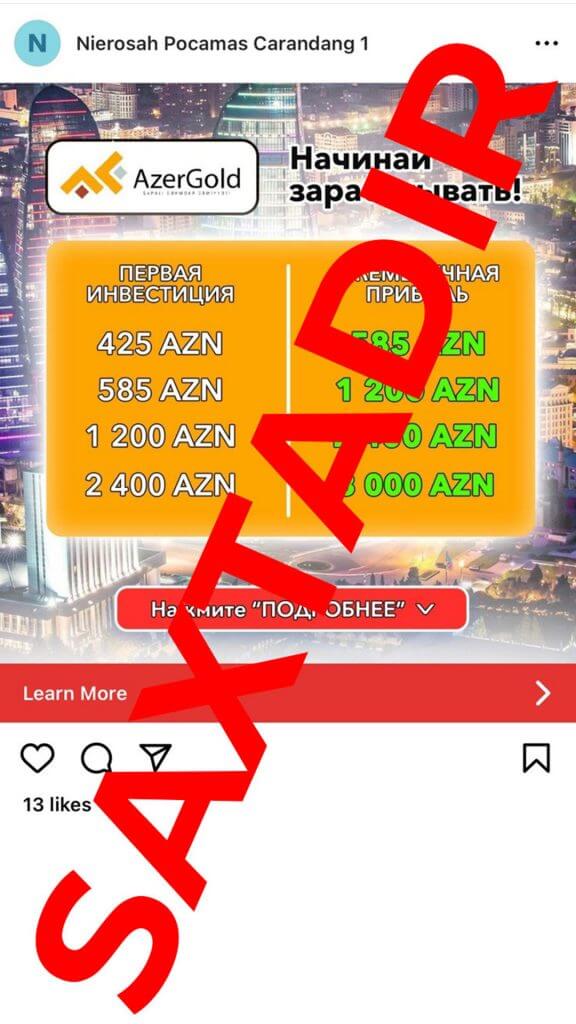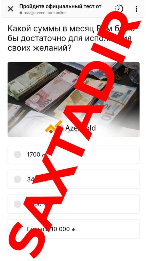 Son günlər “AzerGold” QSC-nin adından istifadə etməklə yenidən saxta reklam kampaniyaları təşkil olunaraq fişinq hücumları həyata keçirilir.
