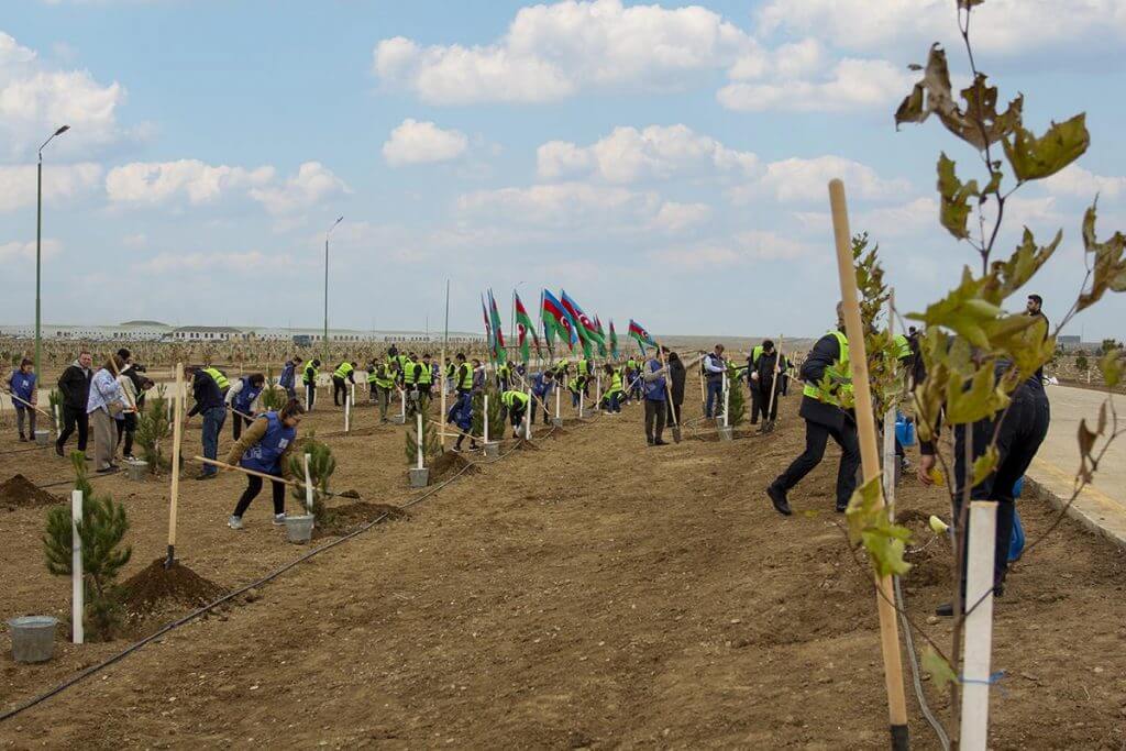 İştirakçılar yürüşün start götürdüyü Müşfiqabad qəsəbəsi ərazisində ağac əkməklə atmosfer havasının keyfiyyətinin yaxşılaşdırılmasına töhfə veriblər.