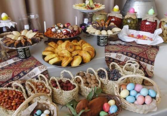 Bayram süfrələrinin olmazsa-olmazı çərəzlərdir: fındıq, qoz, püstə, badam, iydə, innab... Üstəlik içliyi fındıq və ya qozdan hazırlanan şəkərbura, paxlava, İrəvan kətəsi və s. həmişə Novruzun bəzəyi olub.