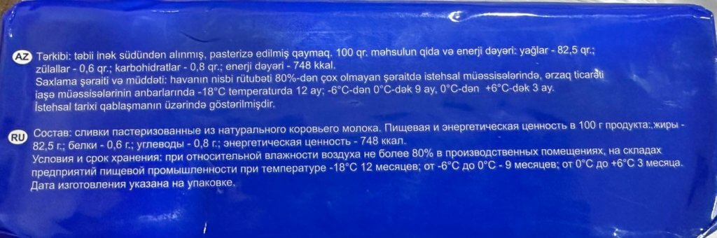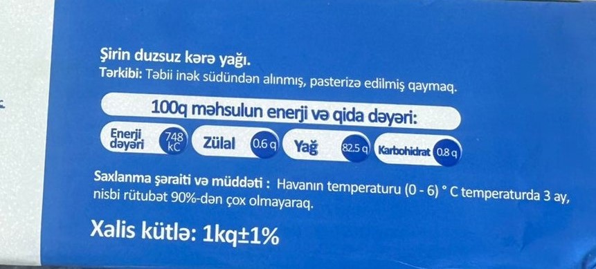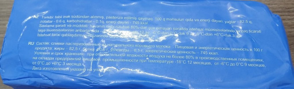 Qeyd edək ki, aşkarlanan uyğunsuzluqlar qida məhsulunun təhlükəsizlik göstəriciləri ilə bağlı olmasa da, istehsalçı tərəfindən qanunvericiliyə zidd şəkildə istehlakçıların aldadılması və hüquqlarının pozulması hesab olunur. Belə ki, kərə yağı məhsullarının üzərində təbii inək südündən alınmış, pasterizə edilmiş qaymaqdan istifadə edilməsi bəyan edilsə də, yoxlama zamanı məhsulun faktiki tərkibinə bitki yağının qatılması halı aşkar edilib.