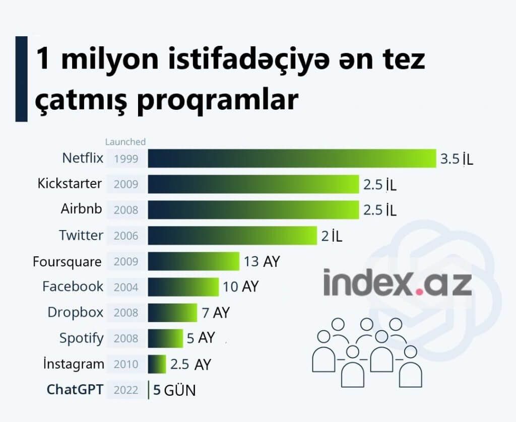 Süni intellekt aləti "ChatGPT" keçən ilin noyabrında, istifadəyə verildikdən cəmi 5 gün sonra 1 milyon istifadəçi qazandı.