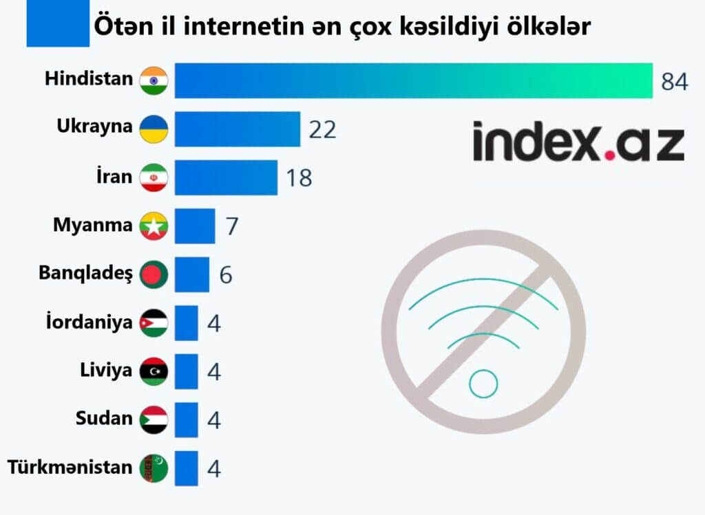 2022-ci ildə Hindistanda 84 dəfə ayrı-ayrı vaxtlarda internet kəsintisi yaşanıb.