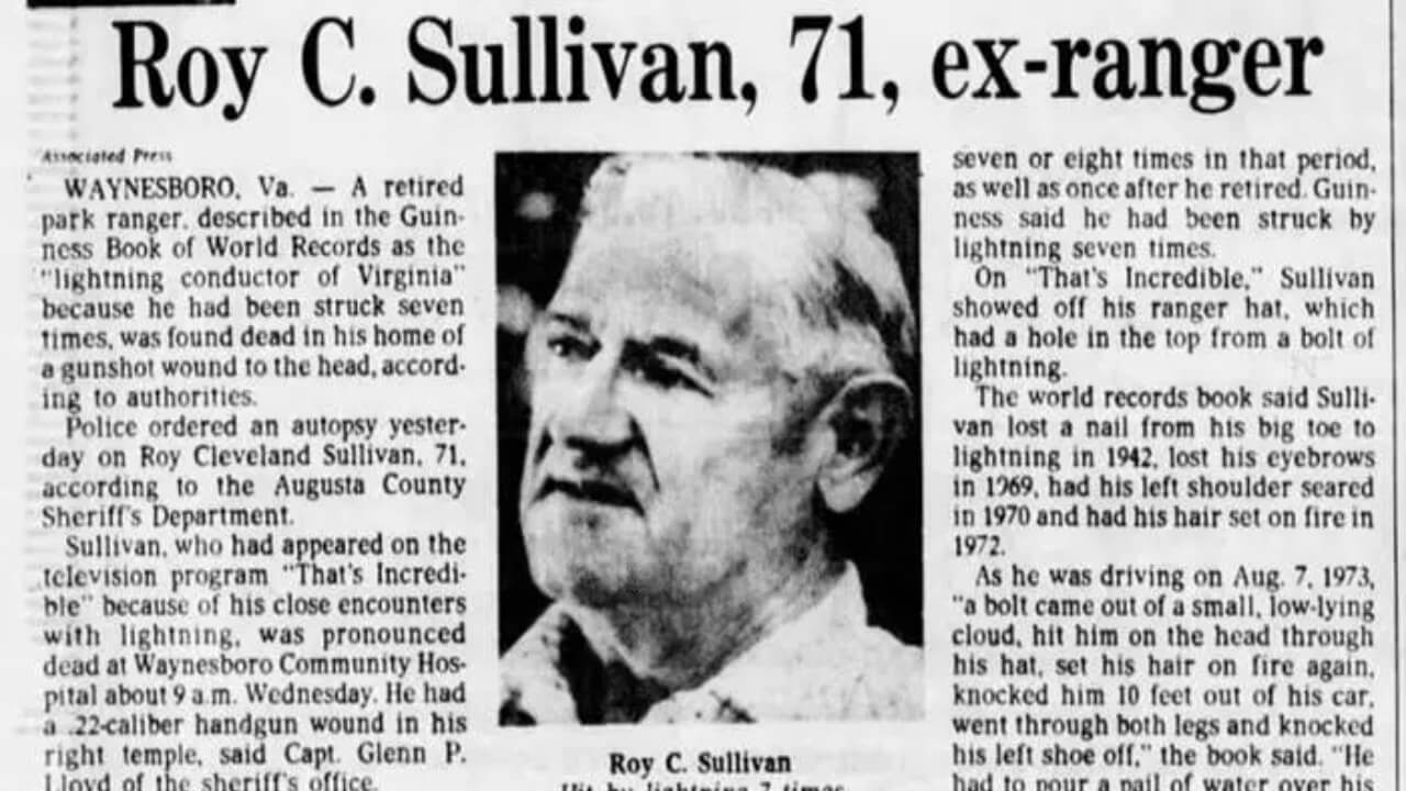ABŞ-ın Virciniya ştatında parkda qulluqçu işləyən Roy Klivlend Sullivanı uşaq olarkən ilk dəfə ildırım vurub.