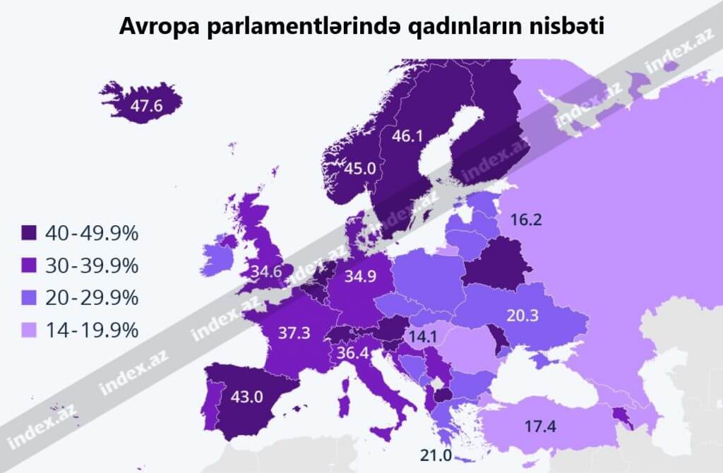 İndex.az Avropa parlamentlərində qadınların nisbətini sizə təqdim edir: