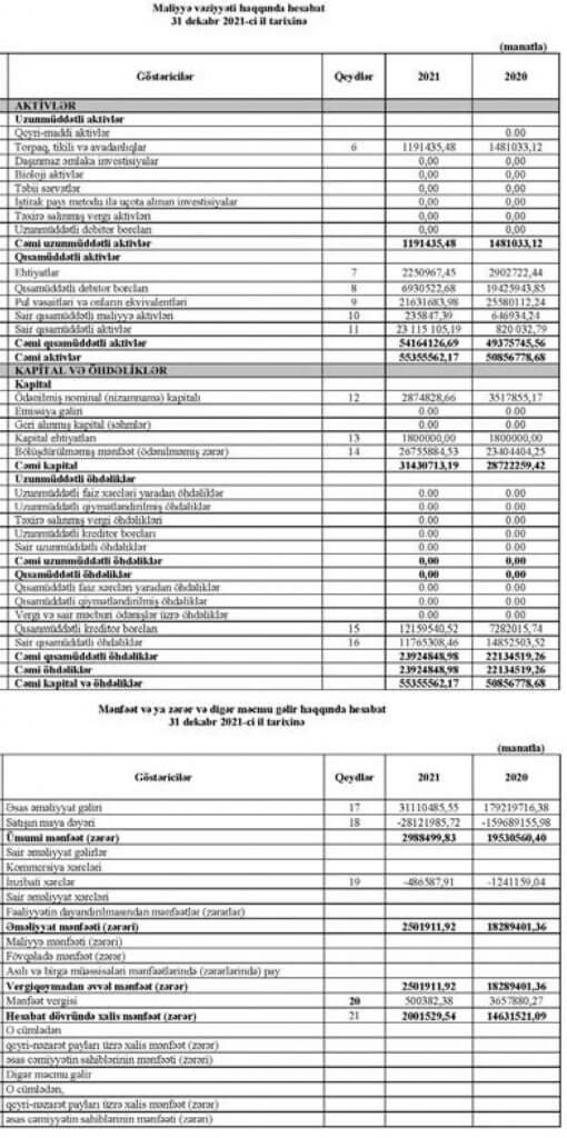 “Azəraqrartikinti” ASC 2021-ci ili 2 milyon manat xalis mənfəət ilə başa vurub. ASC 2020-ci ili 14 milyon 631 min manat xalis mənfəət ilə bağlamışdı. Beləliklə, 2020-ci illə müqayisədə 2021-ci ildə “Azəraqrartikinti”nin xalis mənfəəti 7,3 dəfə azalıb. Xalis mənfəətin azalması gəlirlərin kəskin azalmasından qaynaqlanır.