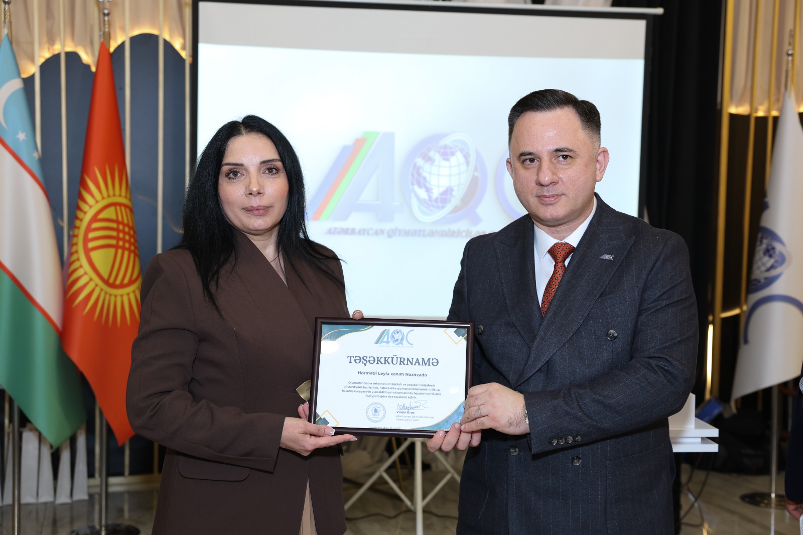 Tədbirdə UNEC(Azərbaycan Dövlət İqtisad Üniversiteti) tərəfindən AQC sədri Vüqar Oruca serifikat təqdim olunub. Serifikatı təbrik çıxışdan sonra fəlsəfə üzrə fəlsəfə doktoru, UNEC Təcrübənin təşkili şöbəsinin müdiri Leyla Nəzirzadə təqdim edib.
