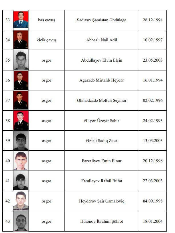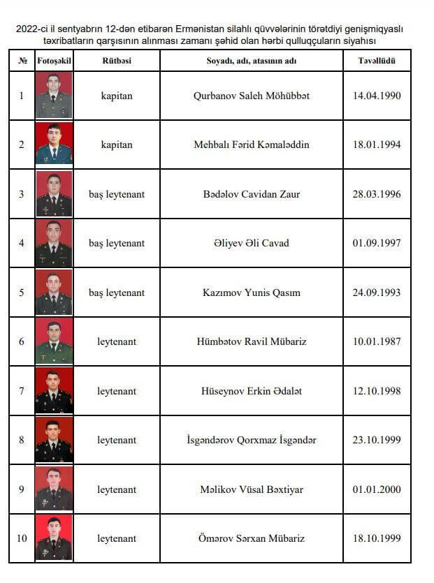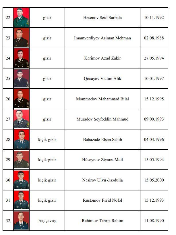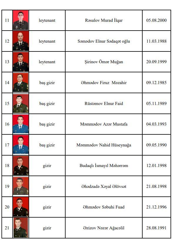 Ermənistan silahlı qüvvələrinin törətdiyi təxribatların qarşısını alarkən Azərbaycan Silahlı Qüvvələrinin daha 21 hərbi qulluqçusu şəhid olub.