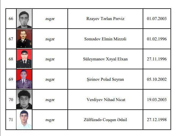 Bununla da, erməni təxribatlarının qarşısını alarkən şəhidlik zirvəsinə ucalan hərbi qulluqçuların sayı 71-ə çatıb.