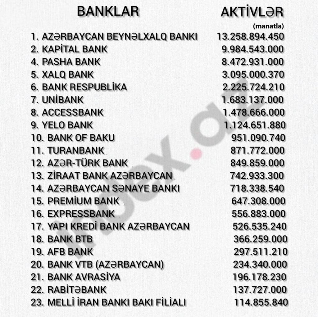 İndex.az Azərbaycanda fəaliyyət göstərən bankların aktivləri üzrə renkinqi sizə təqdim edir: