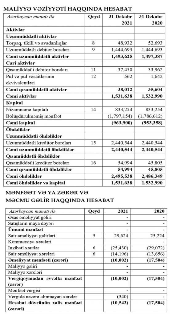 “Azərtəkrarqarametal” ASC 2021-ci ili 10 min 542 manat xalis zərər ilə başa vurub. ASC 2020-ci ili 17 min 504 manat xalis zərər ilə bağlamışdı.