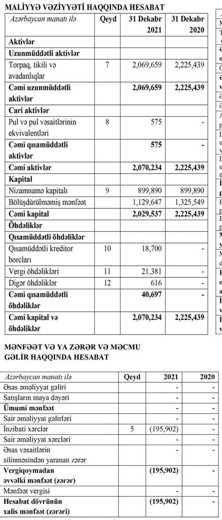 “Bakı Elektroştamp” ASC 2021-ci ili 195 min 902 manat xalis zərər ilə başa vurub.