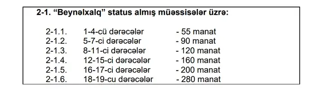 Xüsusi status almış mədəniyyət təsisatlarının işçilərinin aylıq vəzifə maaşlarına əlavələr aşağıdakı kimi olacaq: