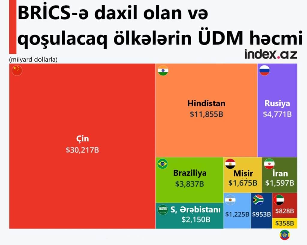 Ən böyük ÜDM-yə sahib BRİCS ölkəsi Çindir.