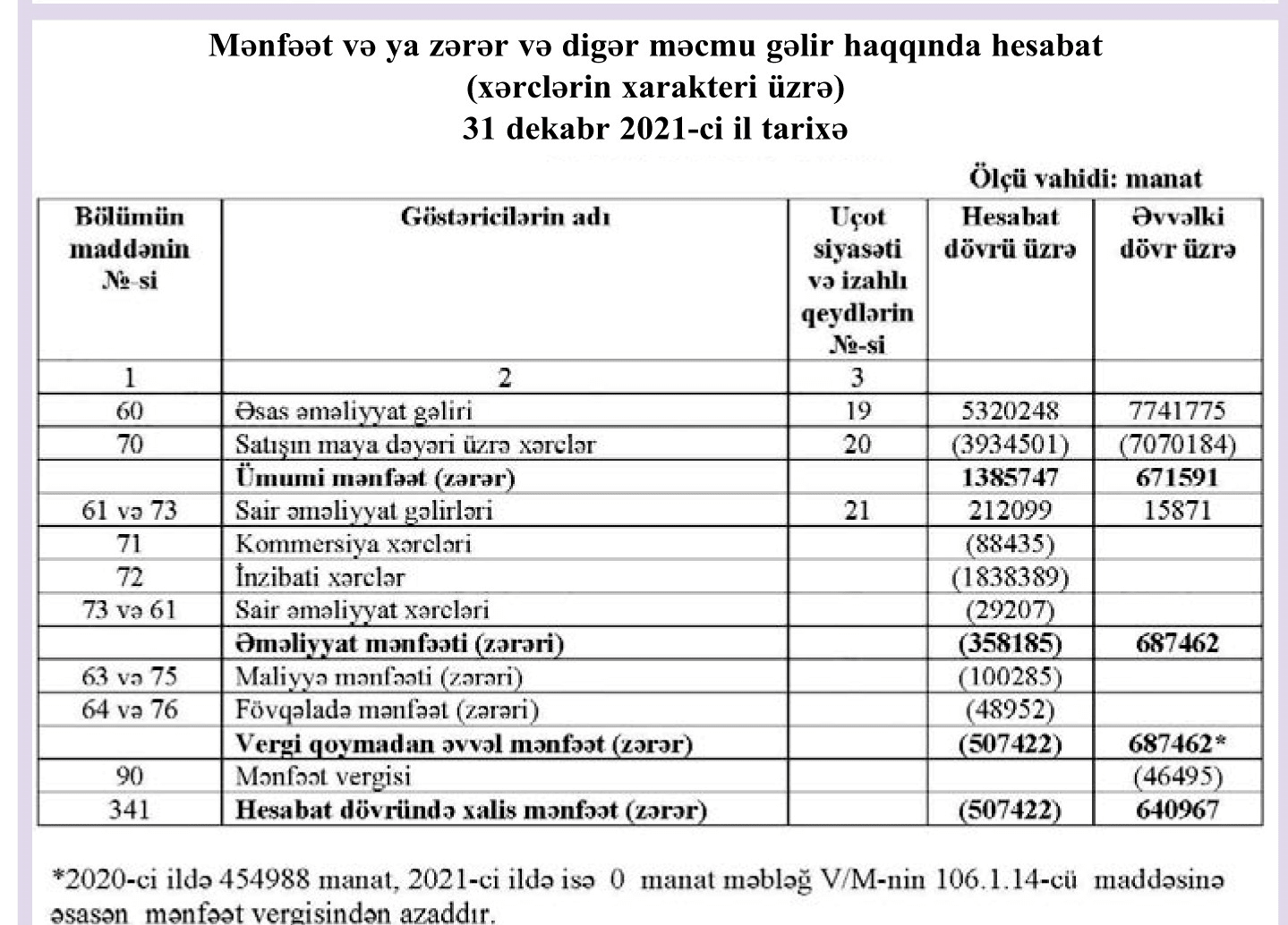 Nəticədə «The Snack Company» 2021-ci ili 507 min manat xalis zərərlə başa vurub, halbuki, 2020-ci ildə şirkətin 641 min manat xalis mənfəəti vardı.