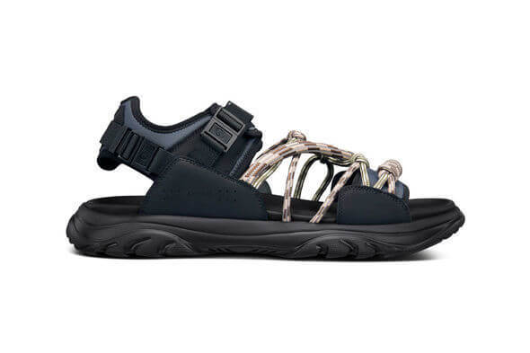 Qara və bej rənglərində təqdim olunan səndəllər brendin loqosu ilə zəngin şəkildə bəzədilib; loqonu ultra yüngül altlığın daxili və xarici hissəsində, həmçinin ayaqqabının plastik kəmərində görmək olar.