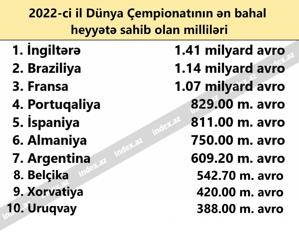 İndex.az 2022 DÇ-na qatılacaq ən bahalı heyətə sahib milliləri sizə təqdim edir: