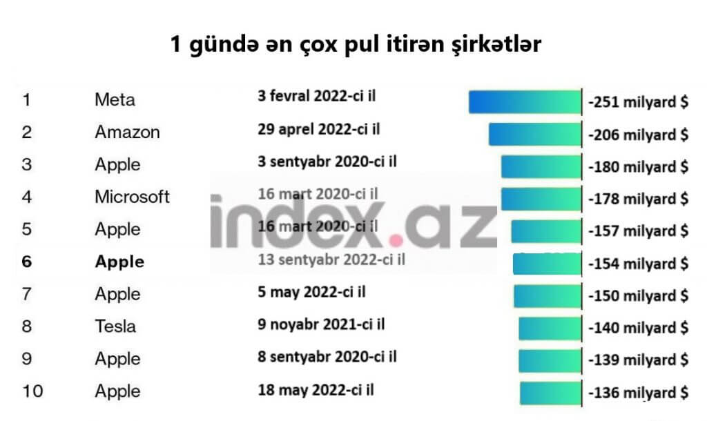 Böyük şirkətlər bəzən 1 gün ərzində milyardla dollar itirə bilir.