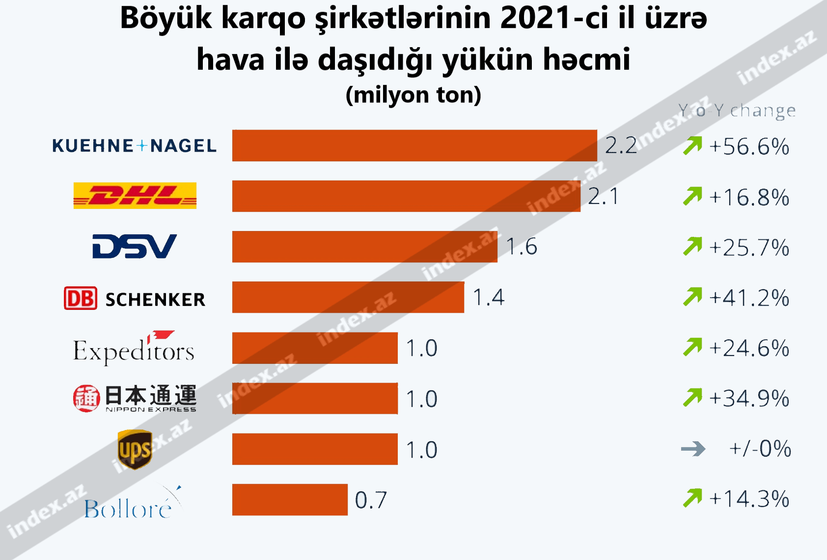 dünyanın 8 ən iri logistika şirkətinin (dövriyə milyon tonla göstərilib) siyahısını təqdim edir:
