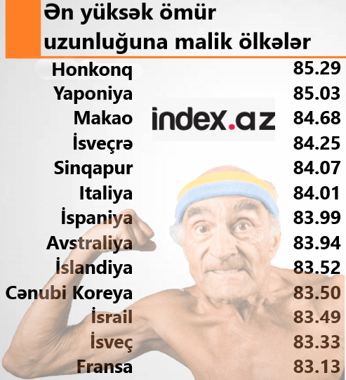 İndex.az ən uzun ömürlü insanların yaşadığı ölkələri sizə təqdim edir: