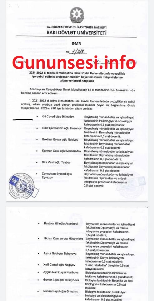 Məsələ ilə bağlı BDU-dan "Qafqazinfo"ya daxil olan məlumatda deyilir: