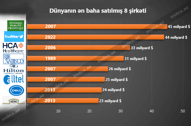 İlon Mask "Twitter" üçün 44 milyard xərcləsə də, bu, "Twitter"i satılmış ən baha ikinci şirkət etdi.