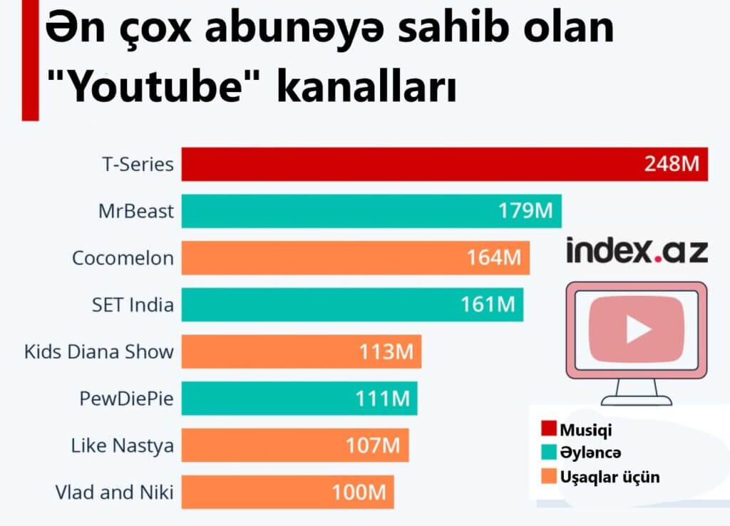 İndex.az xəbər verir ki, bu kanalın abunə sayı 248 milyon nəfərdir.