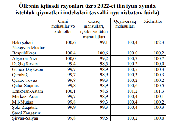 Azərbaycanda bu ilin iyun ayında qiymətlərin ən çox yüksəldiyi iqtisadi rayonlar məlum olub.