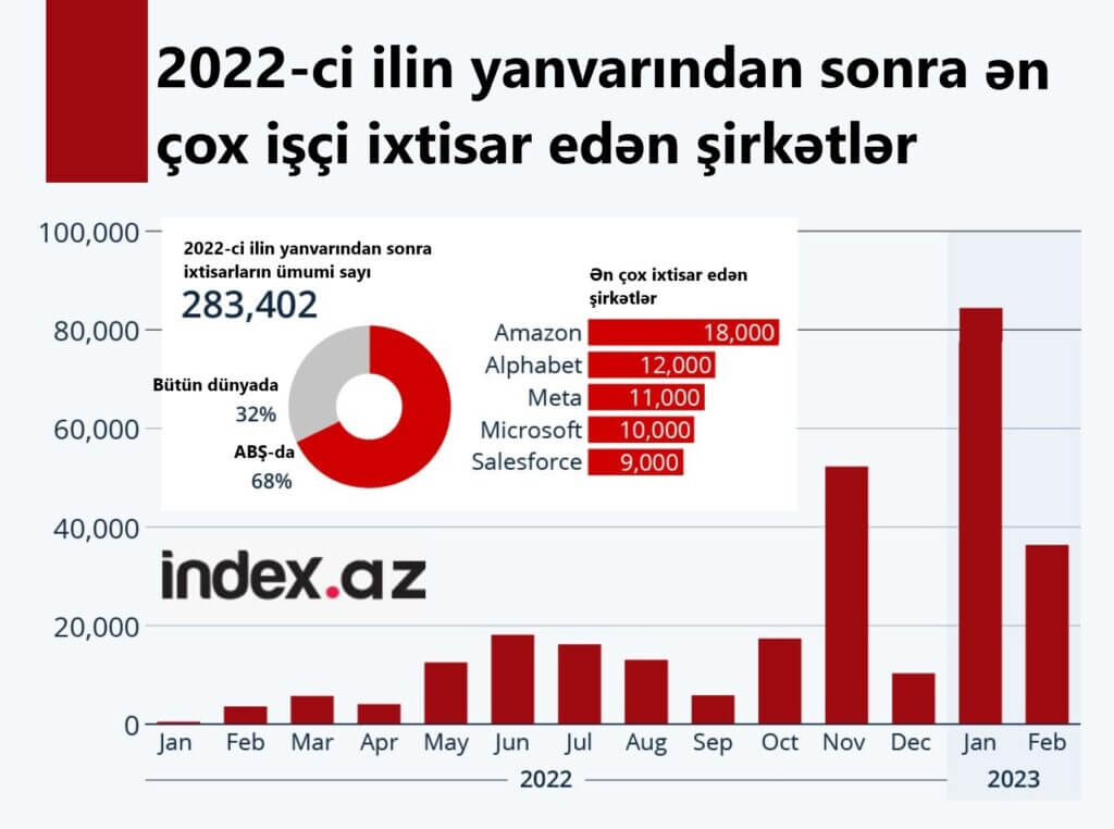 2022-ci ilin yanvar ayından bu günə qədər ən çox ixtisarı "Amazon" şirkəti edib.