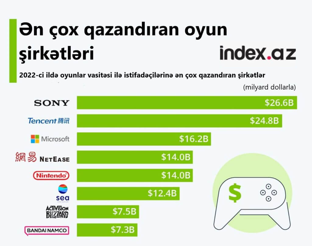 "Sony" istifadəçiləri oynadıqları oyunlar sayəsində ötən il 26.6 milyard dollar qazanıblar.