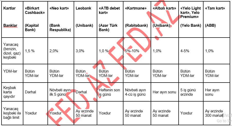 İndex.az bankların yanacaq «kəşbək»lərini təqdim edir.