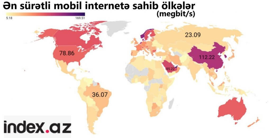Norveç, Kanada, ABŞ, Səudiyyə Ərəbistanı da sürətli mobil internetlərinə görə seçilən ölkələrdəndir.