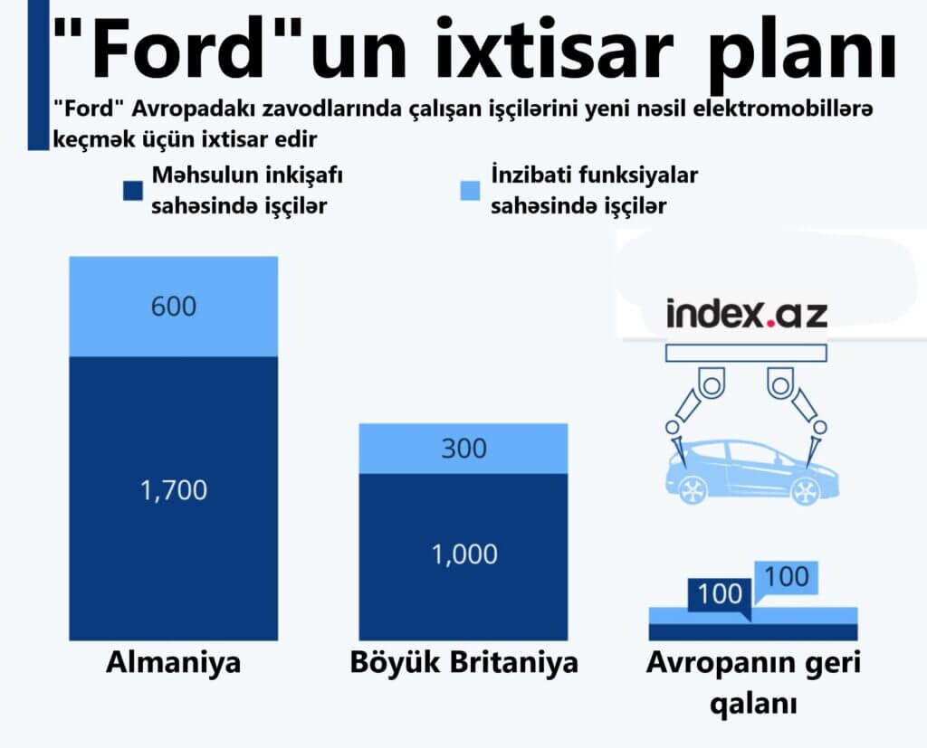 İndex.az xəbər verir ki, başda Almaniya və Böyük Britaniya zavodları olmaqla "Ford" Avropada ümumi 3800 işçinin ixtiasırını planlaşdırır.