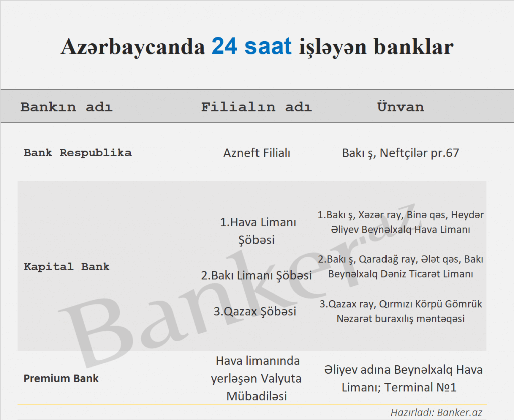 İndex.az xəbər verir ki, Banker.az 24 saat iş rejimində işləyən bankları araşdırıb.