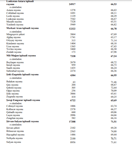 Rayonlar üzrə 1 nəfərə düşən ən çox sosial yardım məbləği Biləsuvardadır. Bu rayonda aylıq ünvanlı dövlət sosial yardımın məbləği 74 manat 88 qəpik təşkil edir. Biləsuvardan sonra ən yüksək orta aylıq dövlət sosial yardımı Daşkəsəndə verilib. Bu rayonda orta aylıq ünvanlı dövlət sosial yardımın məbləği 72 manat 65 qəpik olub. 3-cü yerdə isə 72 manat 64 qəpik olmaqla Qəbələ dayanır.