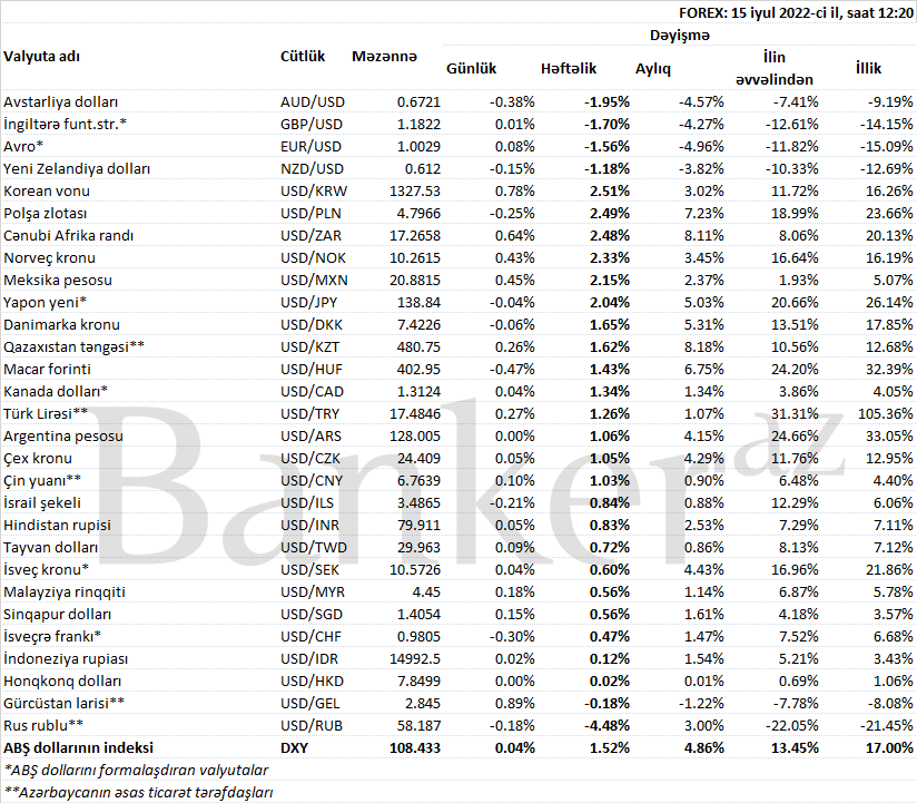 Dolların bahalaşması ilə bağlı əsas səbəb: investorların gələcəkdə ABŞ Federal Ehtiyat Sisteminin monetar siyasətini sərtləşdirəcəyi ilə bağlı gözləntiləridir. FED ölkədə 9.1%-lik göstərici ilə son 40 ilin maksimuna çatan illik inflyasiyanı cilovlamaqda israrlı olmaları ilə bağlı gözləntiləridir. Növbəti iclasda 75 və 100 baza bəndi faiz artımını mümkün sayırlar.