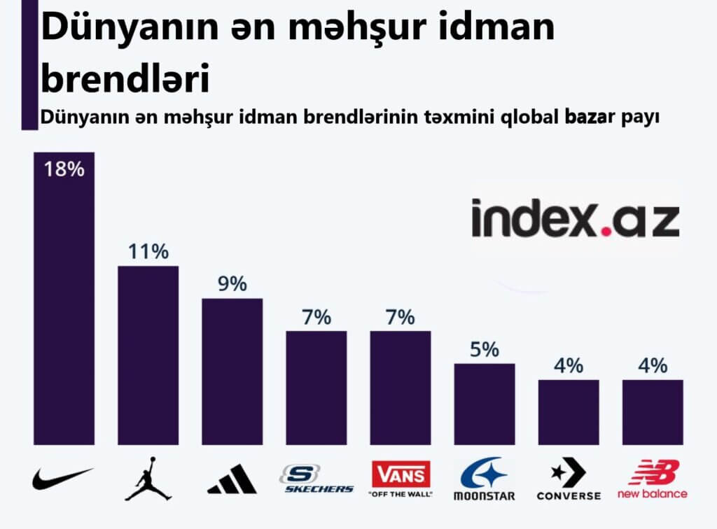 İndex.az xəbər verir ki, "Nike" ümumi bazarın 18%-nə nəzarət edir.