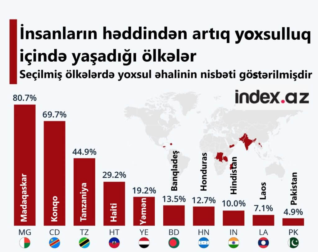 İndex.az xəbər verir ki, Madaqaskar əhalisinin 80,7%-i yoxsuldur.