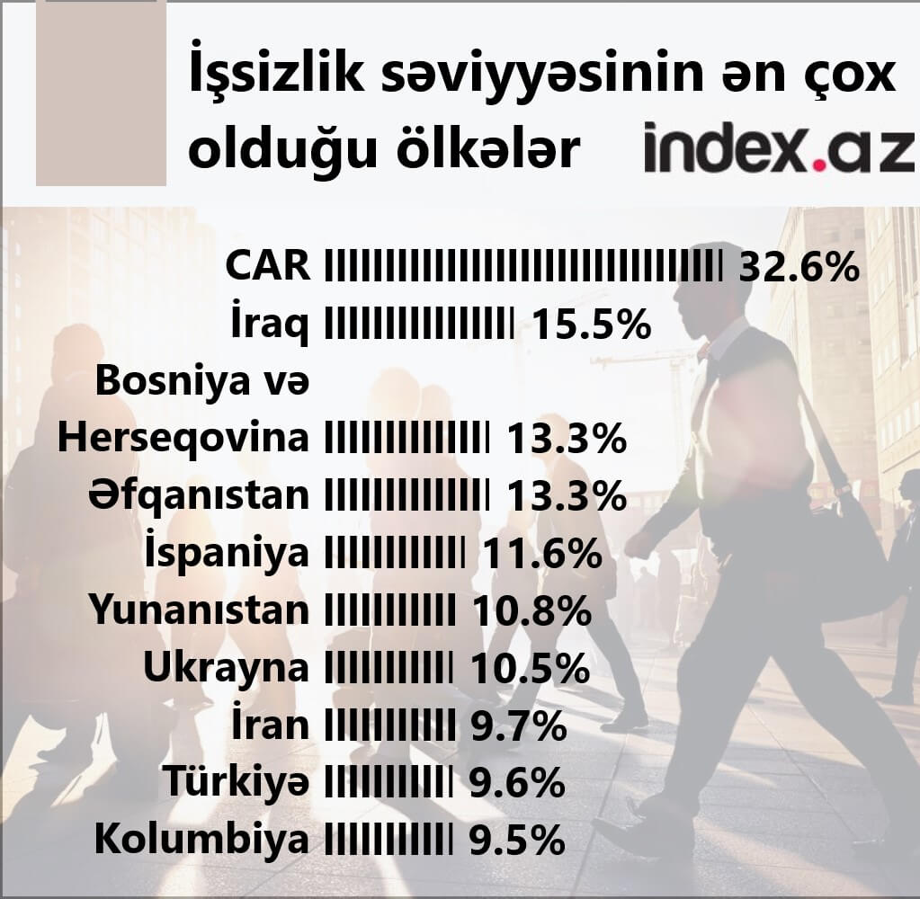 İşsizlik səviyyəsinin ən yüksək olduğu ölkə Cənubi Afrika Respublikasıdır.