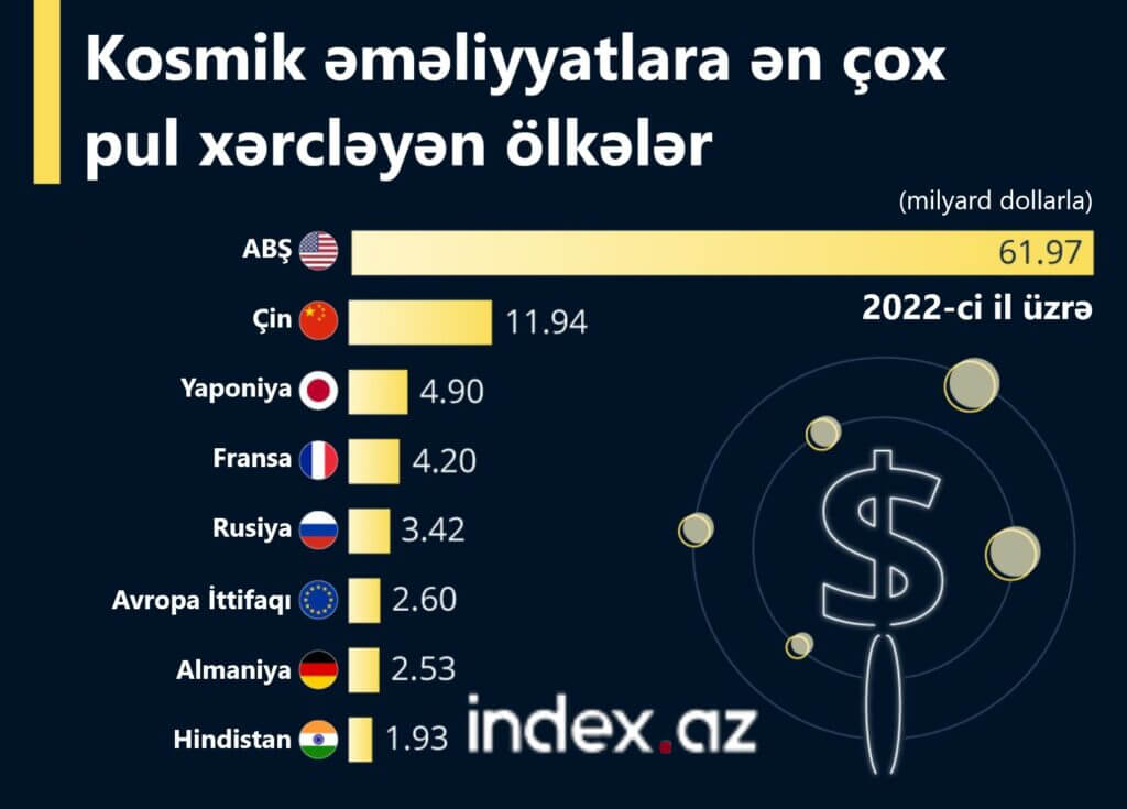 2022-ci ildə kosmik əməliyyatlara ən çox xərci ABŞ çəkib.