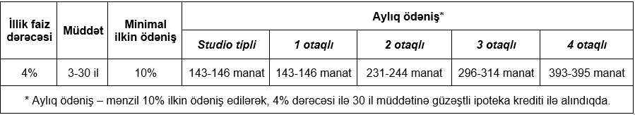 2 otaqlı mənzillərin qiyməti – 53 732 manatdan,