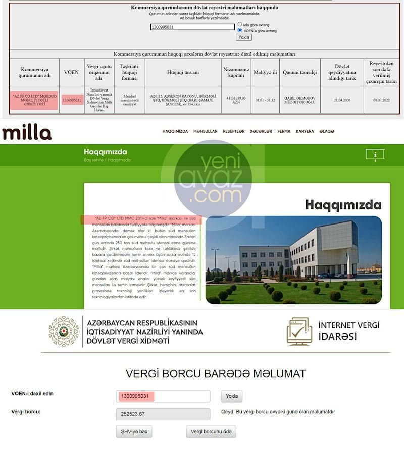 Azərbaycanın aparıcı süd məhsulları istehsalçılarından biri olan “AZ FP CO LTD” MMC-nin (VÖEN- 1300995031) dövlət büdcəsinə böyük həcmdə vergi borcu var.