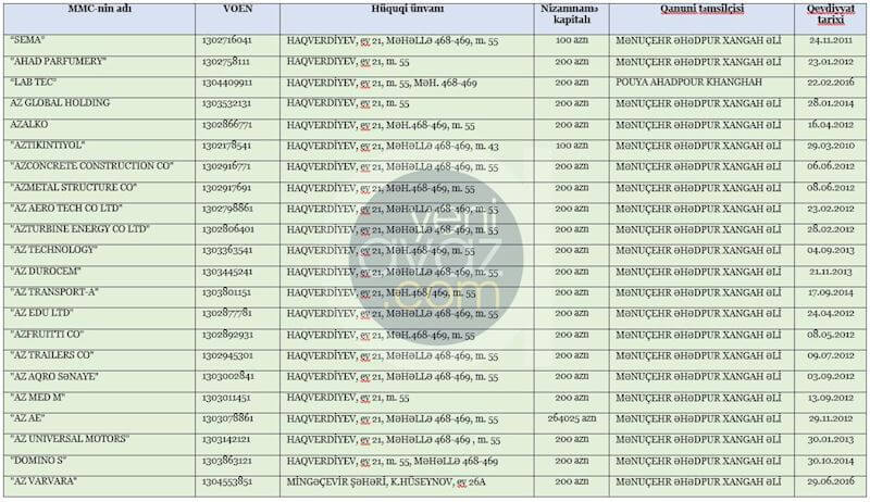 Onu da qeyd edək ki, “AZ FP CO LTD” MMC yeni açılan zaman şirkətə İran əsilli iş adamı Mənuçehr Əhədpur Xangah rəhbərlik edib. Mənuçehr Əhədpur Xangah hazırda Yasamal rayon, Haqverdiyev ev 21 ünvanında yerləşən onlarla şirkətə rəhbərlik edir. Mənuçehr Əhədpur Xangahın adı uzun müddət mətbuatda fövqəlada hallar naziri Kəmaləddin Heydərovun ailə üzvlərinə aid olan “Gilan” holdiqlə birgə çəkilib.