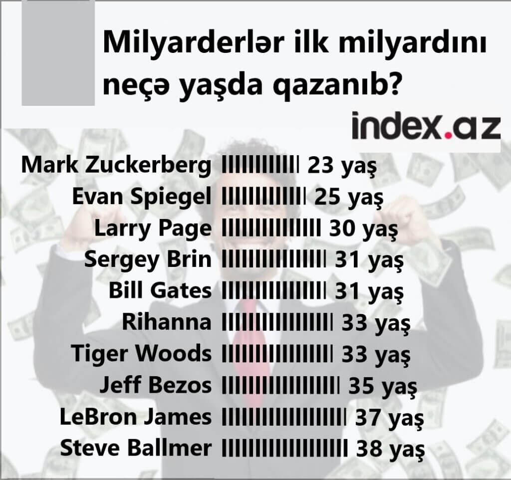 İndex.az xəbər verir ki, Mark Zukerberq milyarder olarkən onun cəmi 23 yaşı olub.