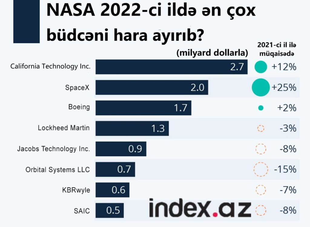 NASA 2022-ci ildə ən çox büdcəni "Kaliforniya Texnoloji İnstutu"na ayırıb.