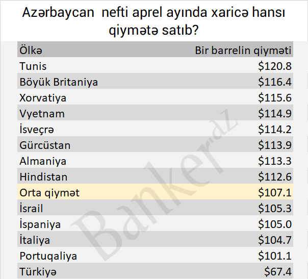 Azərbaycan 2022-ci ilin aprel ayı ərzində ixrac etdiyi neftin hər barelinin orta dəyəri 107 dollardan baha olub.