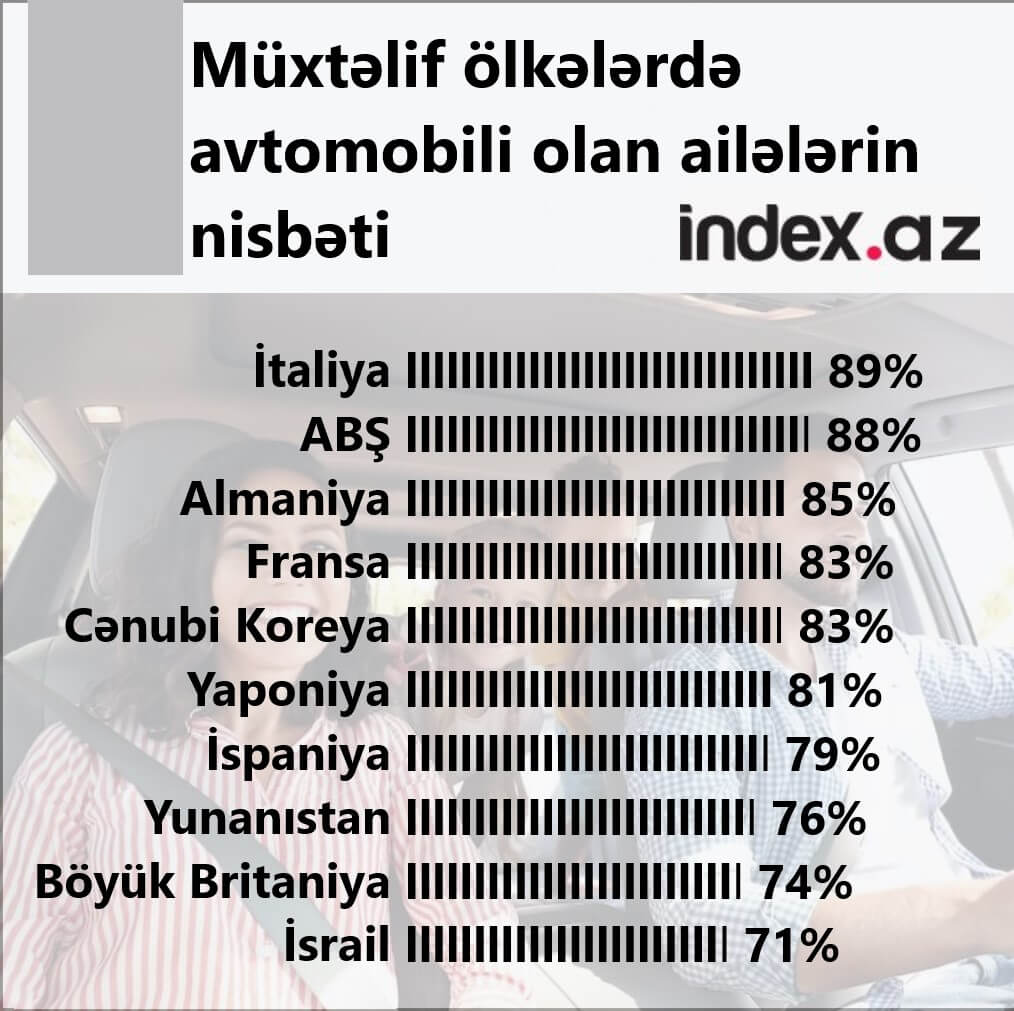 index.az xəbər verir ki, İtaliyada ailələrin 89%-i avtomobil sahibidir.