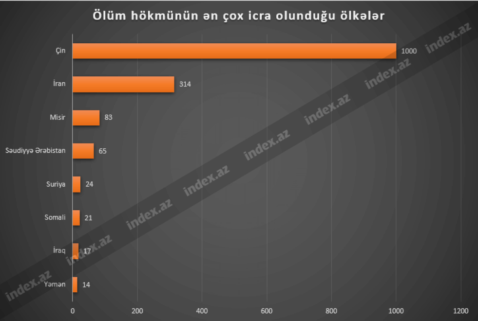 İndex.az xəbər verir ki, əsasən islam ölkələrində ölüm hökmü icra olunsa da, 2021-ci ildə insanlar ən çox Çində edam edilib.