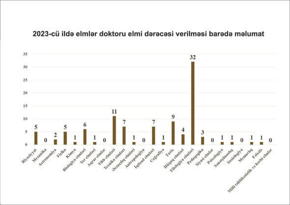 Bildirilib ki, 2023-cü il ərzində Azərbaycan Respublikasının Prezidenti yanında Ali Attestasiya Komissiyası tərəfindən 99 nəfərə elmlər doktoru elmi dərəcəsi verilib.