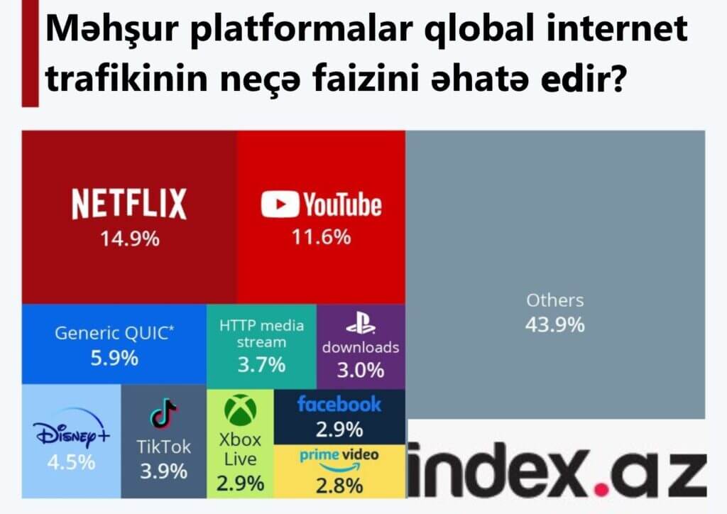 İndex.az xəbər verir ki, "Netflix" qlobal internet trafikinin 14.9%-ni əhatə edir.
