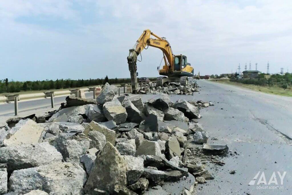 Aparılan işlər zamanı yolun hərəkət hissəsinin deformasiyaya uğramış və dağılmış hissələri, həmçinin yol əsasının yararsız qruntu qazılaraq çıxarılır. Daha sonra isə yararlı qrunt tökülərək yenidən kipləşdiriləcək qırmadaş layı döşənərək yeni yol əsasının tikintisi aparılacaq. Bu işlər yekunlaşdıqdan sonra yola yeni asfalt-beton örtüyü döşənəcək.
